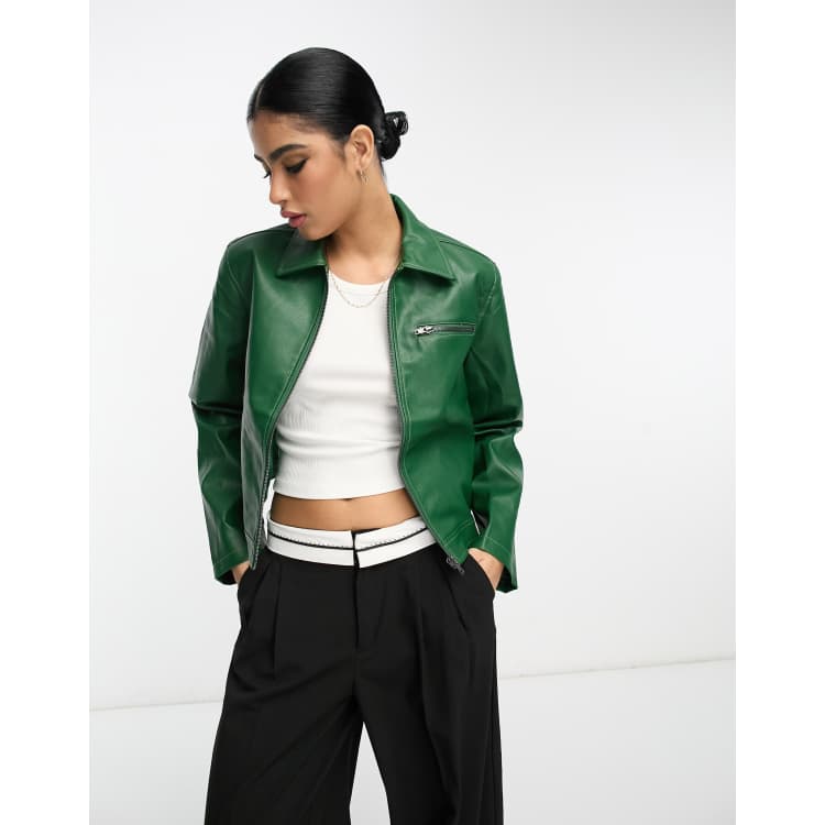 Green faux discount leather jacket