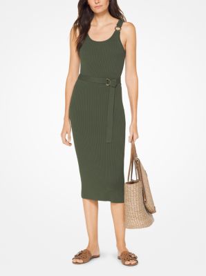 Michael kors belted ribbed discount knit dress