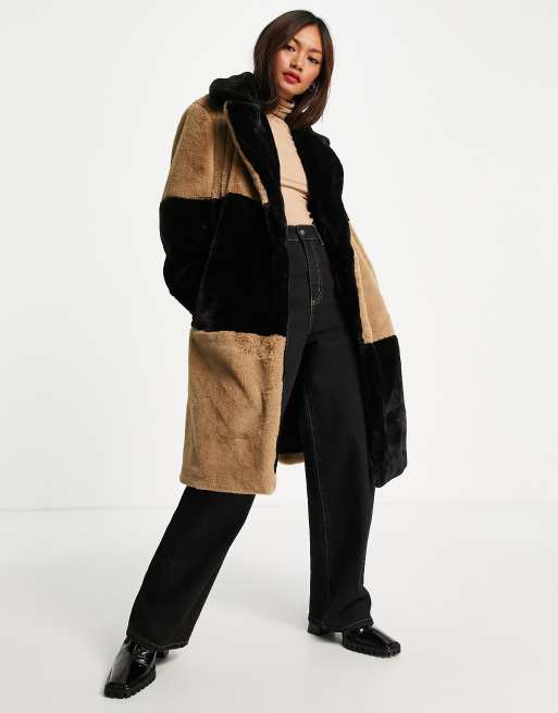 Color block discount faux fur coat